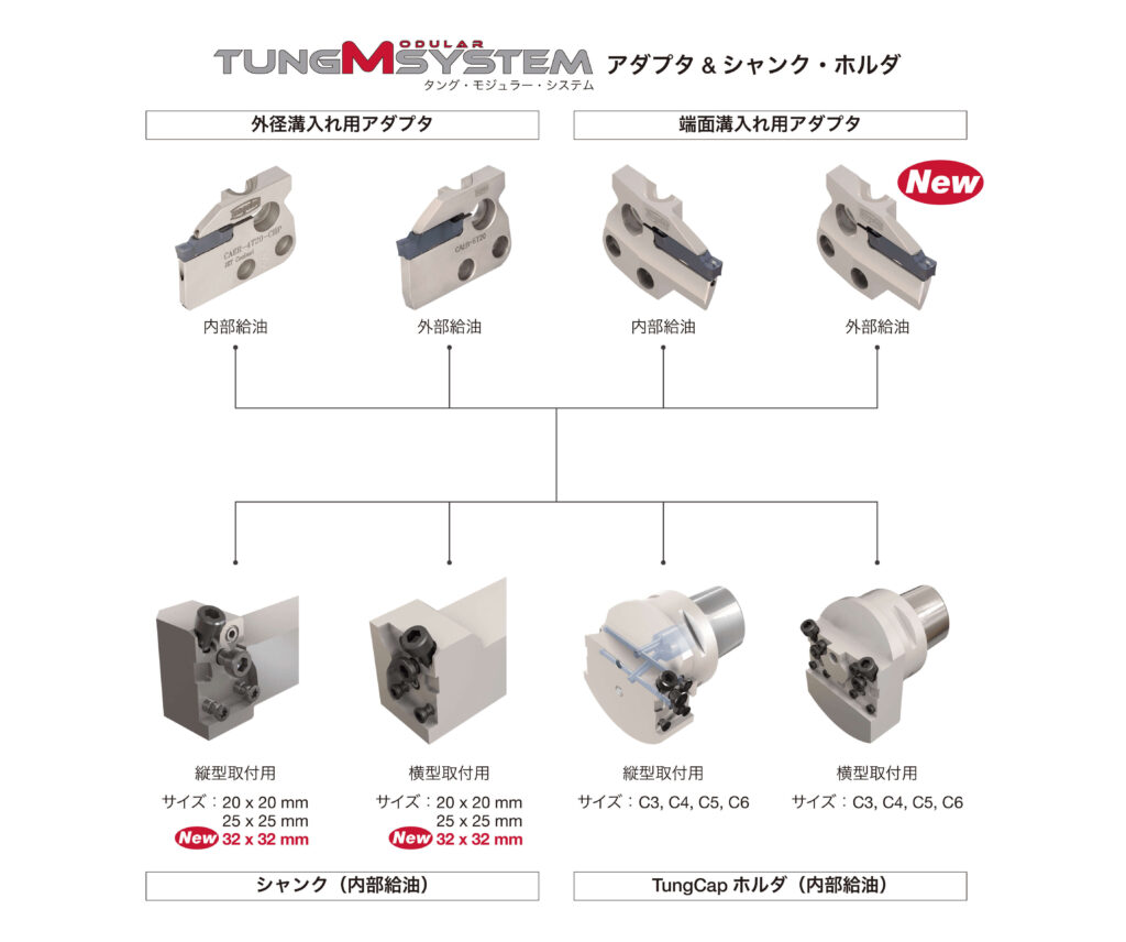 株式会社タンガロイ(社長:木下聡、本社:福島県いわき市好間工業団地11-1)は、溝入れ加工用刃先交換式工具『TungCut』に、外部給油仕様の端面溝入れ用アダプタおよび32角シャンクを新たに追加し、2025年10月14日より全国で発売を開始します。