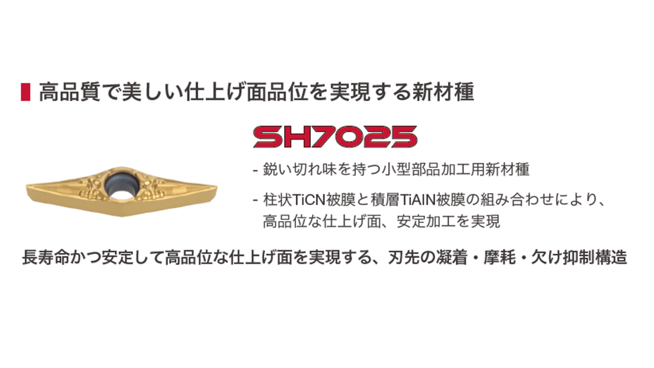 特長3:SH7025材種との組み合わせによる安定加工と高品位仕上げ