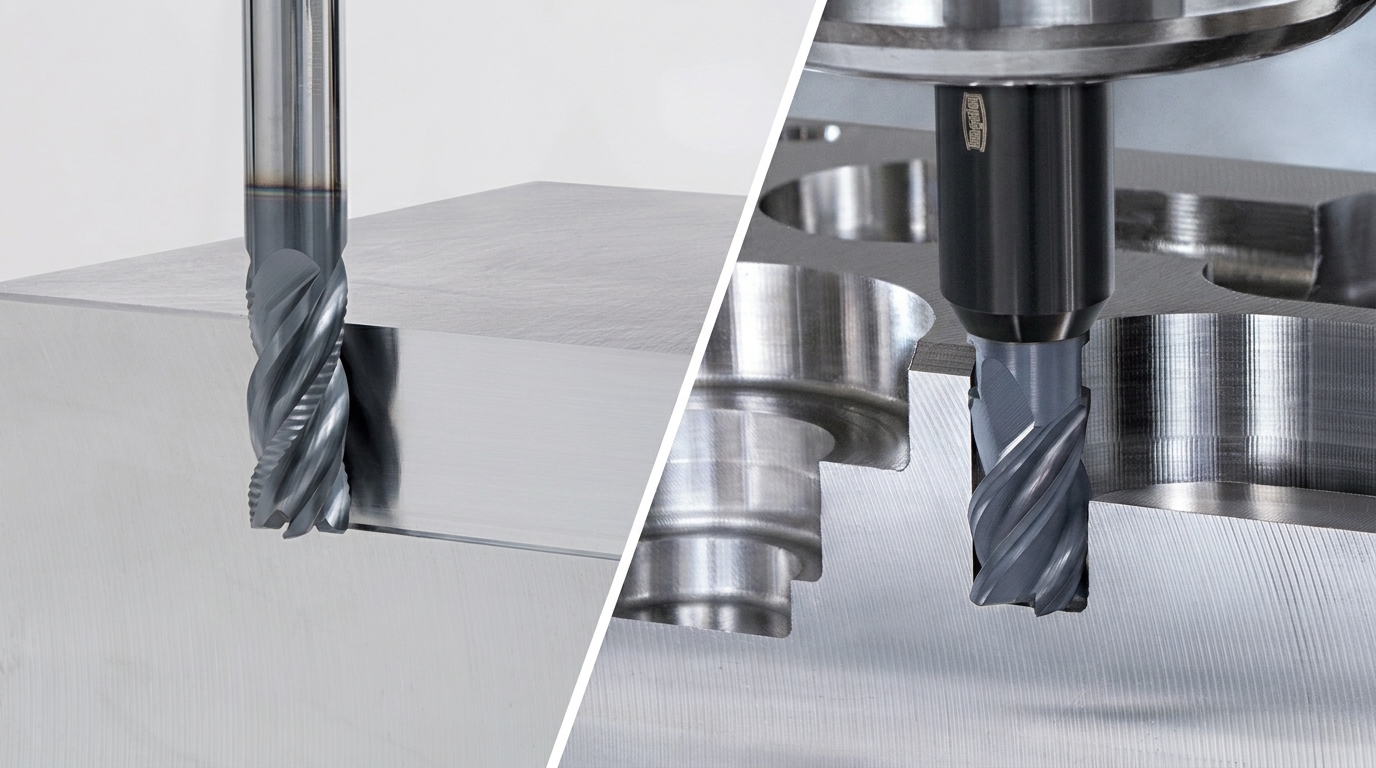 [vc_row css_animation="" row_type="row" use_row_as_full_screen_section="no" type="full_width" angled_section="no" text_align="left" background_image_as_pattern="without_pattern"][vc_column][vc_column_text css=""] 緊急課題:超硬原料の高騰による工具費上昇 工具費高騰の今こそ、 エンドミルの「当たり前」を疑え。 超硬原料の価格上昇が引き起こす生産コストの高止まり。 これまでと同じ「とりあえず通用する手堅い工具」を選び続けていては利益は削られる一方です。 慣習的な選定や加工方法を見直す「絶好の契機」が、今まさに訪れています。 期間限定公開 2本のオンラインセミナーで最適選定ノウハウを無料公開中 Are you facing these issues? 生産技術・現場の皆様、こんな課題感はありませんか? 超硬材料の度重なる値上げで、工具費の予算オーバーが常態化しつつある 肩削りから溝加工まで、とりあえず「使い慣れた汎用の4枚刃」を選んでしまっている もっと条件を上げて能率を稼ぎたいが、びびりや折損が怖くて踏み込めない The Trap of "Standard" 84%の現場が選定する「汎用4枚刃」。 その絶対的信頼に潜む落とし穴 タンガロイの調査では、エンドミル使用比率の実に84%が4枚刃という結果が出ています。 切りくず排出性と剛性のバランスが良く、「標準工具」として深く現場に浸透している証拠です。 しかし、「使い慣れていること」と「常に最適であること」は全くの別問題です。 加工内容に合わないソリッドエンドミルの使用は、知らず知らずのうちに能率低下と工具寿命の縮小を招き、利益を確実に削り取ります。 今こそ、現場の「当たり前」を疑う時 超硬価格が高騰している今だからこそ、いつもの工具選定を一度立ち止まって見直すことが、コスト削減への確かな一歩になります。 多くの現場が「いつも通り」で選んでいるこの領域にこそ、大幅なコストダウンのヒントが眠っています。 Optimization Logic 加工別の「最適解」を知れば、 圧倒的な高能率とコストダウンは両立できる 肩削り、溝加工、仕上げ加工。それぞれの加工特性にジャストフィットした選定ロジックを導入することで、 現場のポテンシャルは一気に解放されます。 肩削り加工 最大のテーマは「びびり抑制」。条件をどこまで上げられるかは、刃数と不等分割・不等リードの最適化で完全に変わります。 溝加工 切りくず詰まりによる折損リスクが高いため、4枚刃の過信は禁物。切込み深さに応じてラフィングなどの別解を選ぶべきです。 ヘッド/インサート交換式という選択 ソリッドからヘッド交換式(TungMeisterなど)や、小径肩削り/高送りカッタへの切り替えは、段取り時間の劇的な短縮や工具費削減、また超硬使用量の削減をもたらします。 2本のセミナーを特別公開中 Watch The Online Seminars さあ、明日から現場が変わる「本物のノウハウ」を持ち帰りましょう 文字だけでは伝えきれない「工具の違いによる挙動」「具体的な成功事例・切削データ」を、2つの公開セミナーで余すところなく解説しています。 気になるチャプターをクリックして、あなたの現場に必要な情報からすぐにご視聴ください。 Don't Miss Out 迷っているなら、まずは結果が出た事例をご覧ください 動画では、実際に工具のセオリーを見直すことで、工具費を半減させながら生産性を向上させた事例をご紹介しています。 最適選定のノウハウを動画で見る 資料をダウンロードする [/vc_column_text][/vc_column][/vc_row]...