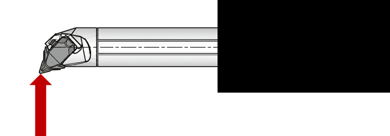 AddMultiTurnの特長は、内径加工で後挽き加工を使いやすいことです。さらに切込み角が小さいため、切りくずを奥に押しやりにくく、手前側へ導きやすい工具の動きが作れます。