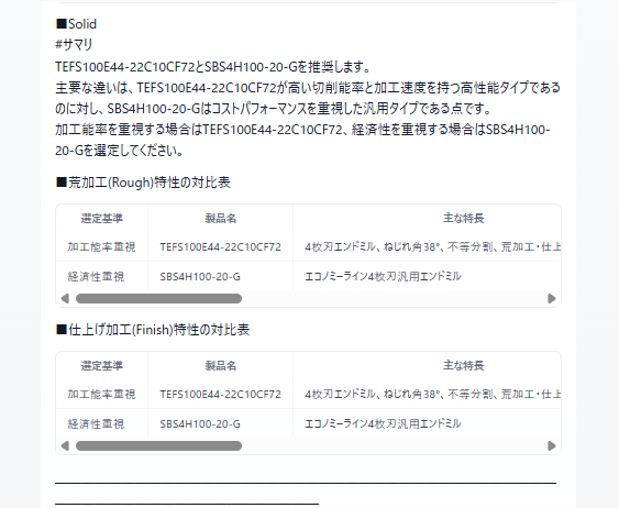 - ソリッドエンドミルとTungMeisterを個別に検討する必要がありました
