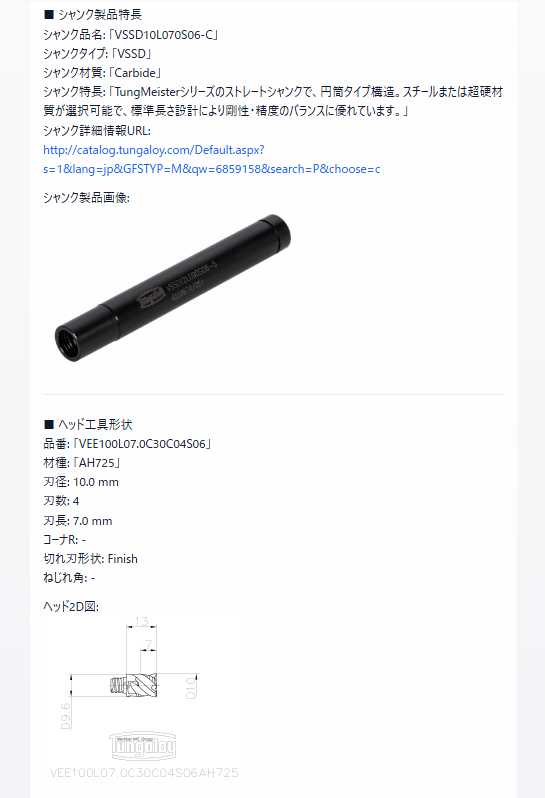 - Tungaloyウェブサイト(エンドミル製品ページ内)