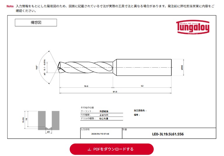 こちらからアクセスできます: https://tungaloy.com/drawing/jp/hole_making/
