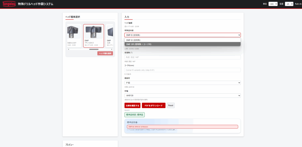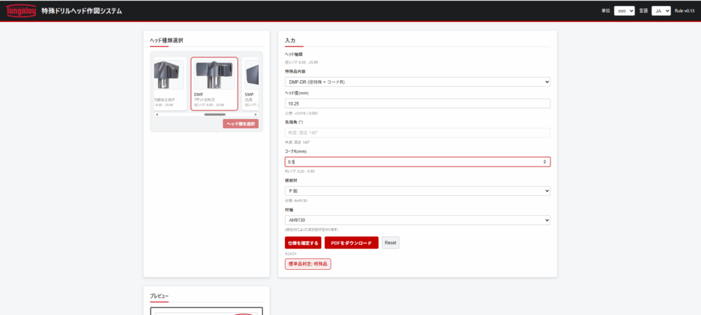 こちらからアクセスできます: https://tungaloy.com/drawing/jp/special-drilling-head/