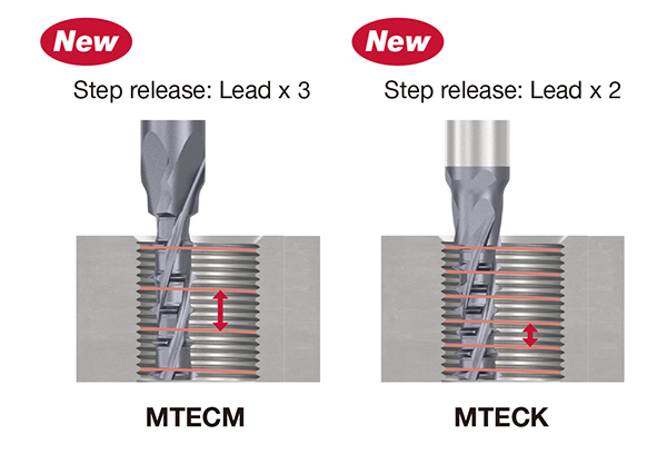 – โครงสร้าง step-release ที่มีช่องว่างระหว่างยอดเกลียวช่วยลดแรงต้านการตัดอย่างมาก