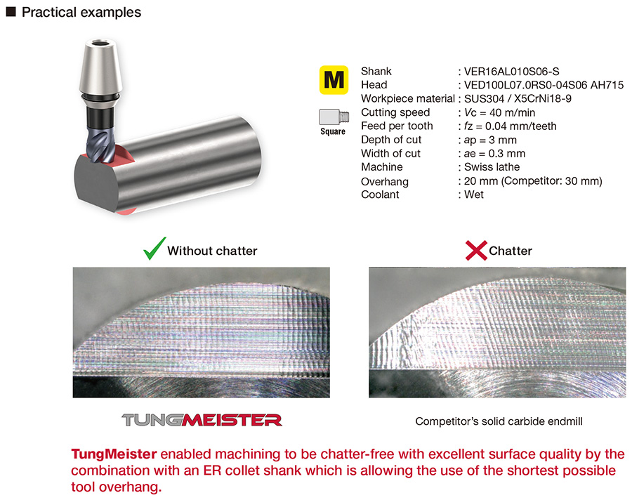 TungMeister est la série de fraises en bout à tête interchangeable haute efficacité de Tungaloy.
